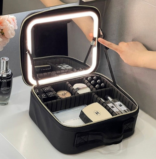 COSMETIQUERO CON ESPEJO Y LUZ LED Y ORGANIZADOR