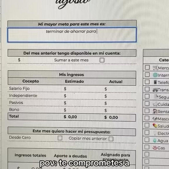 Define tu presupuesto mensual y asigna montos por categoría para una mejor organización.