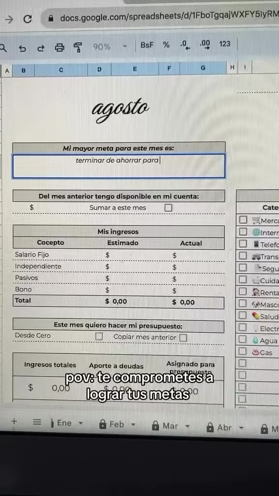 Incluye categorías predeterminadas que puedes editar solo una vez y se replican automáticamente todos los meses.